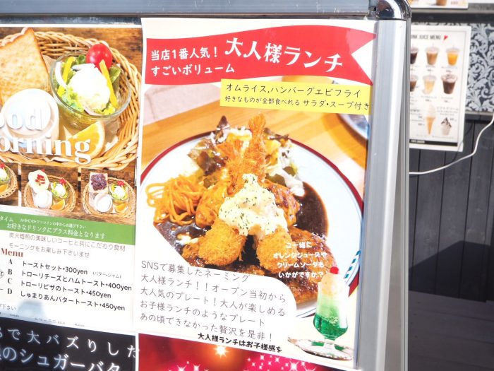 洋食メニューでは、ボリュームたっぷりの「手ゴネハンバーグオムライス」や「大人様ランチ」が人気です。