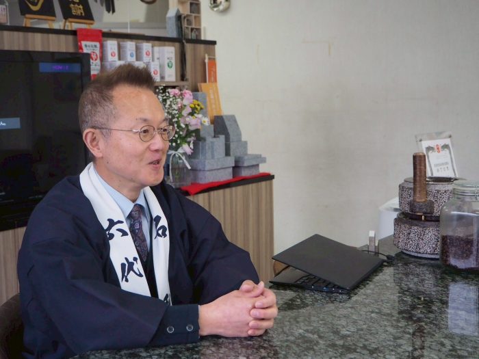 石でできたモチーフやフォトスポットが並ぶ外観を見たことのある方も多いのではないでしょうか?お店を守り受け継ぐ6代目当主、射場一之さんにお話を伺いました。