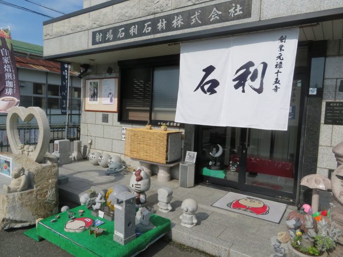 葦原小学校のすぐ横にお店を構える「射場石利石材株式会社」。