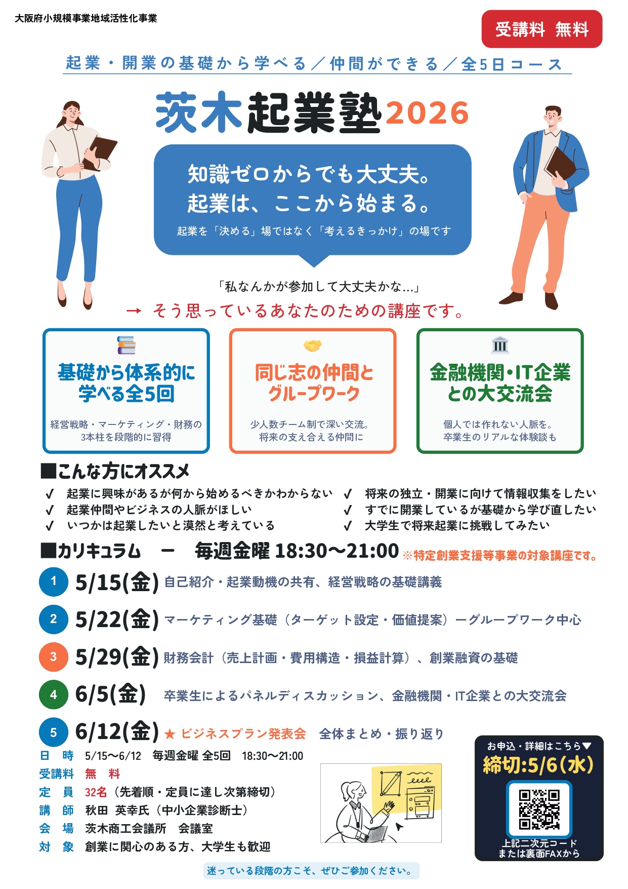 茨木商工会議所で、過去20回以上、900名近くの方が受講された