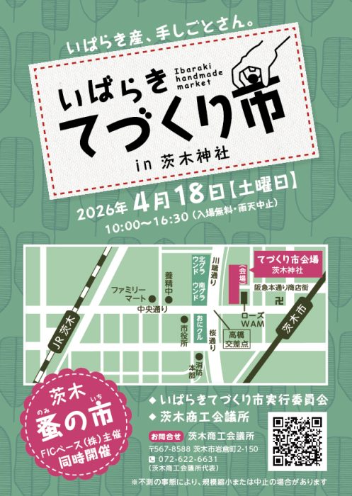 - 2026/04/18(土) いばらきてづくり市 in 茨木神社 開催します!