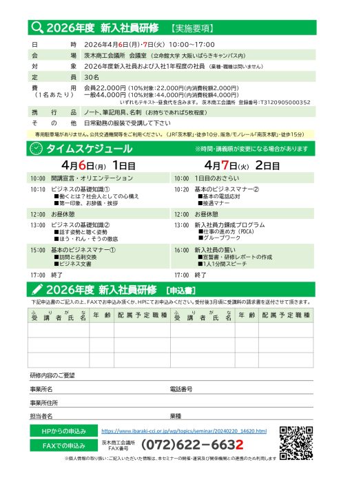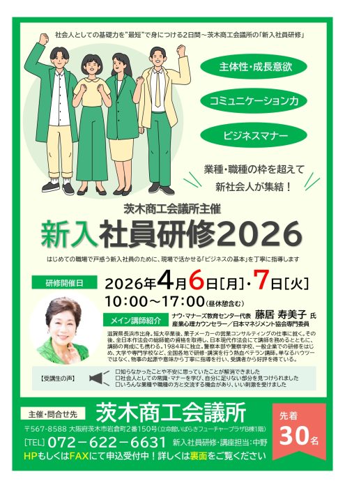 業種・職種の枠を超えて新社会人が集結 新入社員の育成に茨木商工会議所の「新入社員研修」をご利用ください