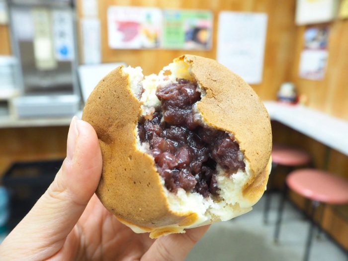 昔から変わらない自家製あんこが、生地の両面にたっぷり入っています。
