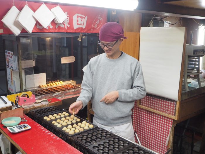 たこ焼き、回転焼きのことを先代から教えてもらい、変わらない味を守っていこうという想いで頑張っています。