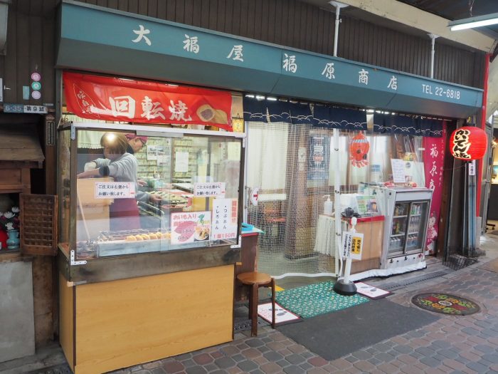 今年で96年目を迎える老舗のたこ焼き・回転焼き屋さん「福原商店」。