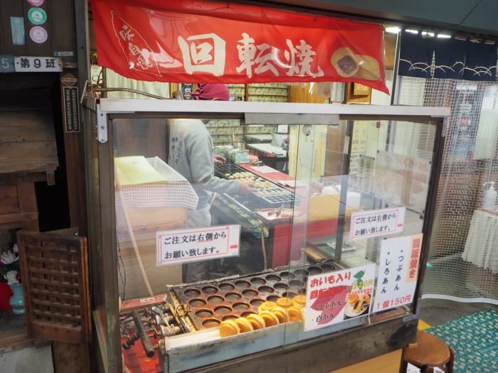 回転焼きは、つぶあん・しろあん・期間限定味から選べ、圧倒的に人気なのは定番のつぶあん味。