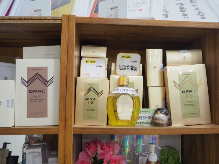 化粧品だと、ロングセラーの薬用美容原液 オパールRⅢを置いているお店は珍しく、市外や梅田からも買いに来られるほど。