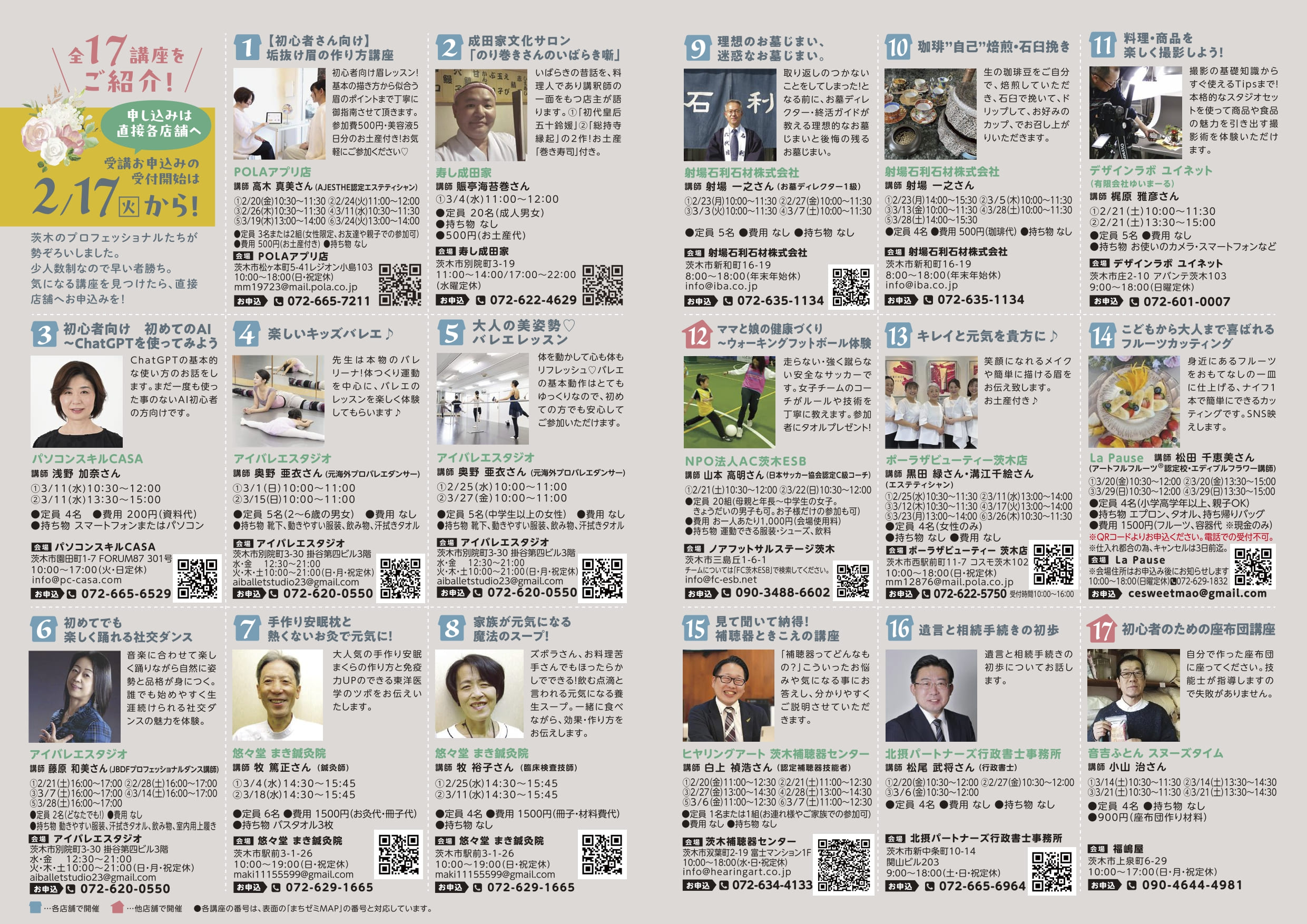 | ステップ2 気になる講座のお店に直接お申込みを! <2/17(火)より受付開始> |