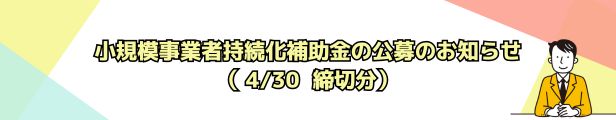 小規模事業者持続化補助金の公募のお知らせ(4/30締切分)
