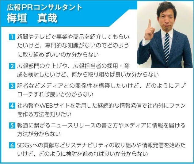 〇広報・販促・ブランディング ・STARTUP SUPPORTERS 岡部 綾菜 ・(株)Color Branding 代表取締役 重野 梨那 ・広報PRコンサルタント 梅垣 真哉 ・(一社)中小企業販促・DX支援協会 代表理事 吉田 正樹 ・(株)みらいきって 代表取締役 高桑 のりこ