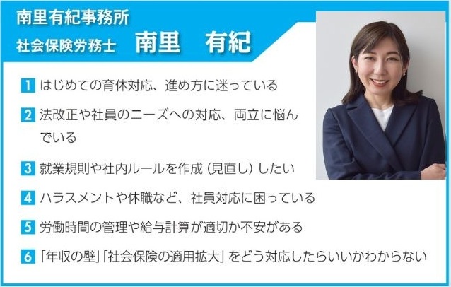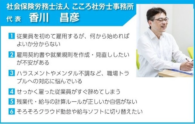 〇労働・人事・社会保険 ・社会保険労務士法人こころ社労士事務所 代表 香川 昌彦 ・社会保険労務士 南里有紀事務所 南里 有紀 |