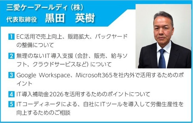 〇IT・デジタル・業務効率化・WEB採用 ・いろは企画 岩佐 桂子 ・Intermind AI(株) 代表取締役 伊部 達朗 ・ (株)ツクリコ 代表取締役 串本 拓馬 ・三愛ケーアールディ(株) 代表取締役 黒田 英樹